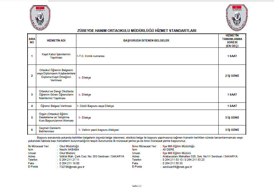 SAKARYA / SERDİVAN - Zübeyde Hanım Ortaokulu